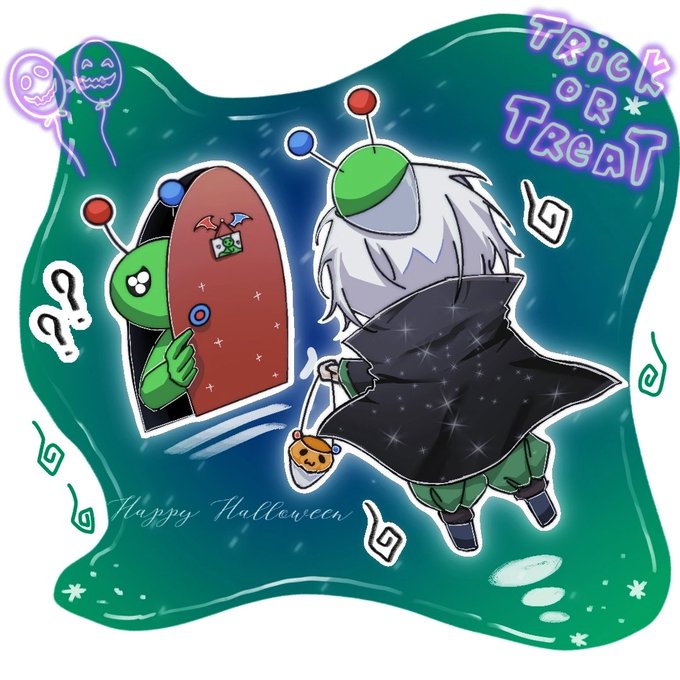 4 45 Happy Halloween \٩( 'ω And there's a question,who's the one lying on the head(*๓´╰╯`๓) #hiroart 22/10/31 10:35