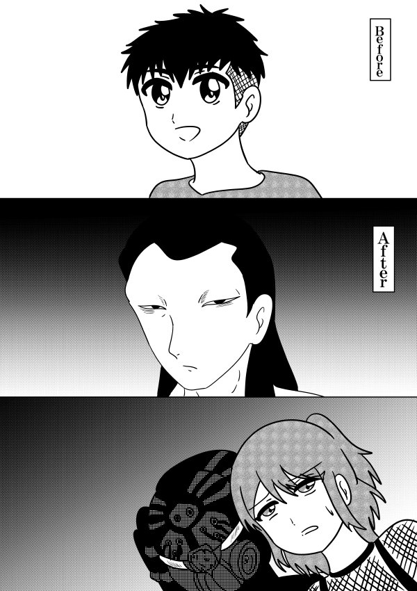 1 9 僕は短髪の男の子のもみあげの上辺りにできる三角の部分が性癖です。あと横山光輝絵も性癖です。 #横山光輝 #絵描きさんと繋がりたい 23/01/04 21:13