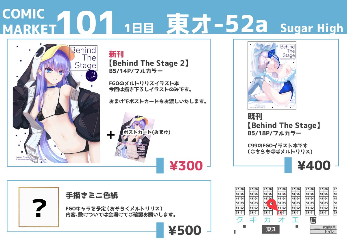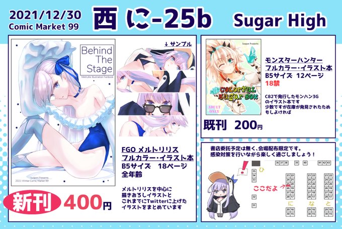 スペース頂けた事に今気が付きました。。頑張ってメルトで新刊持っていきます! あなたのサークル「Sugar High」は、コミックマーケット101で「金曜日東地区 "オ " 52a」に配置されました!コミケWebカタログにてサークル情報ページ公開中です! webcatalog.circle.ms/Perma/Circle/1… #C101WebCatalog