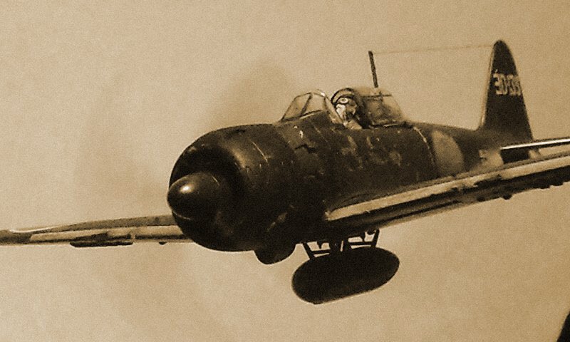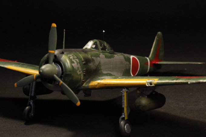 タミヤ製1/48 零戦52型丙 お気に入りの画像です(^O^)/ #モノクロにするとカッコ良く見える魔法がかかる