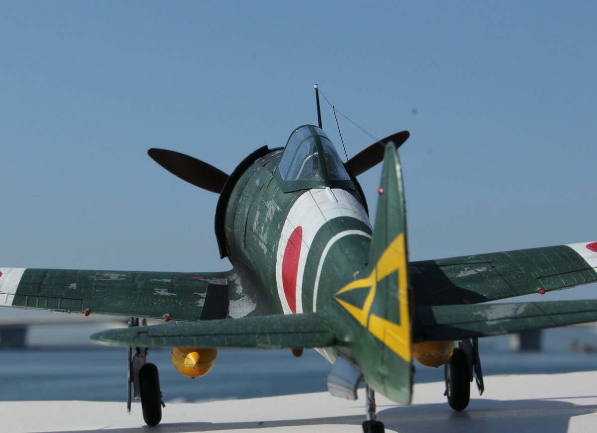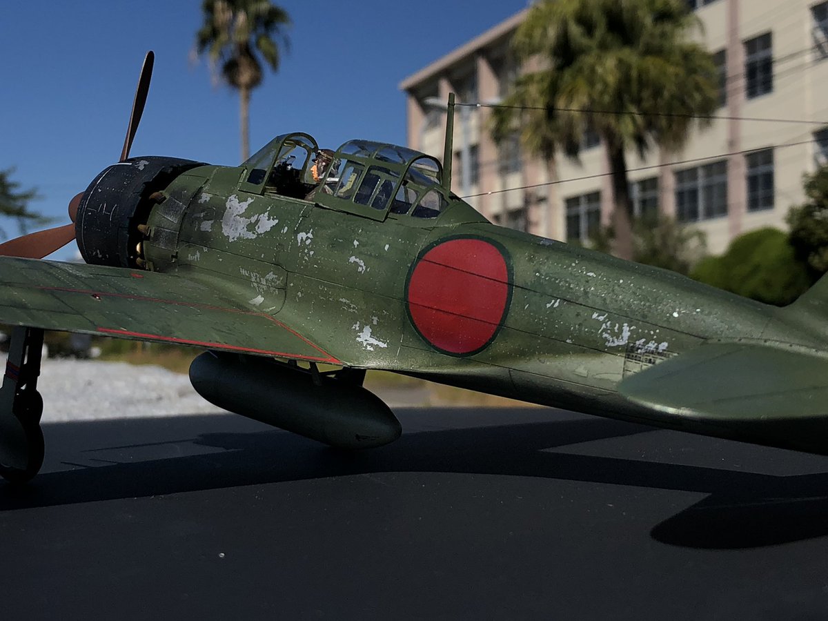 ハセガワ製1/32 零戦52型丙 天気が良かったので野外撮影 風があったので 前と中の風防に両面テープ貼ったら 少し浮いてしまいました(笑)
