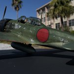12 53 ハセガワ製1/32 零戦52型丙 天気が良かったので野外撮影 風があったので 前と中の風防に両面テープ貼ったら 少し浮いてしまいました(笑) 18/11/17 16:26