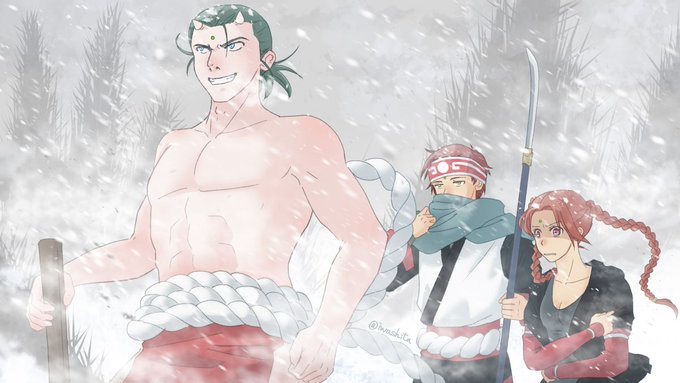 お題:【壊し屋】【冬】 「…鈍感にも程があると思わない!?」 鰯杜家・極寒の針山地獄討伐隊、孟史(壊)・琢磨(薙)・三緒(筒) 壊し屋くんとの真冬の進軍は、見ている同行者の方が風邪ひきそう #俺屍週ドロ
