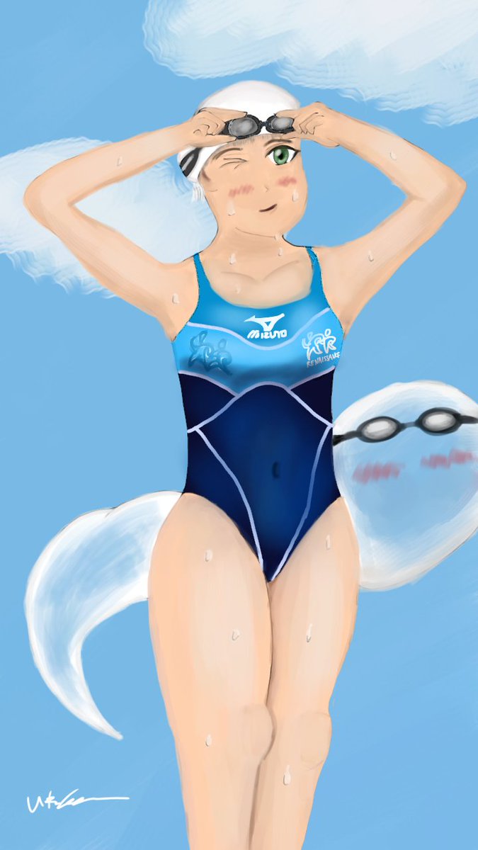 スイマー妖夢描きました。 半霊とかないと妖夢って分からない...