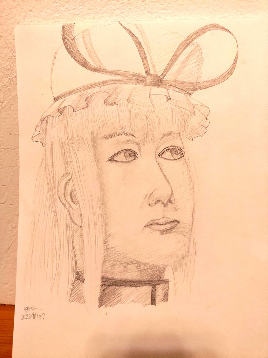 3 6 久々に鉛筆画。紫様描きました。 22/11/23 17:21