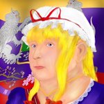 4 11 久々に絵を描きました(約3時間半) 前にデザインした国旗をモチーフにした国家元首風の八雲紫。 #東方 #八雲紫 22/08/25 20:55