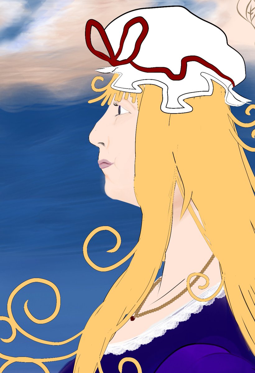 新しいスマホに切りかえた記念にアイビスペイントで油絵風の紫様描いた。 #八雲紫 #アイビスペイント