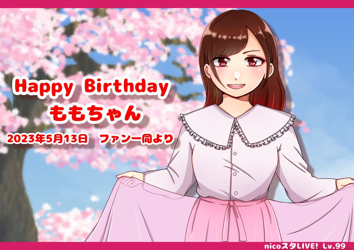 ももちゃんかん…間違えた、ももかんちゃんの生誕nicoスタということで、フラスタのイラストを描かせていただきました!🎈✨ お写真もらったけどめっちゃ綺麗🥹💓 翡翠のまちnico.ms/sm42003618 の1シーンです🌸