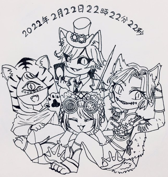 3 21 #猫の日 #第五人格イラスト 2022年2月22日22時22分22秒!! にゃんにゃんにゃんにゃん! 22/02/22 22:22