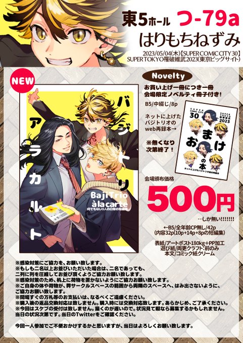 5/4 スパコミ お品書き🐺❄️🐯 SUPER COMIC CITY30 SUPER TOKYO罹破維武 2023 [ 東5ホール つ79a ]はりもちねずみ 当日はよろしくお願いしますー! 支部にも投稿してます→ pixiv.net/artworks/10772…