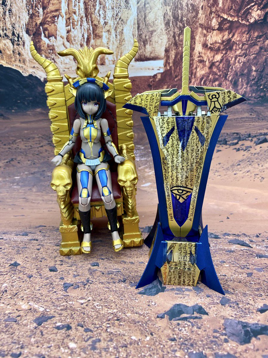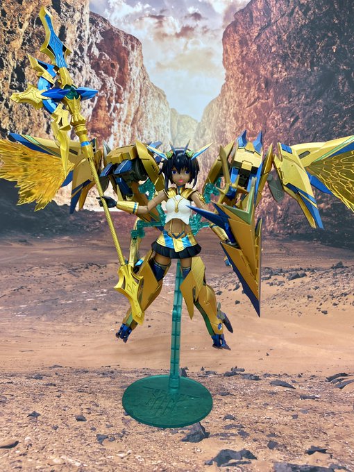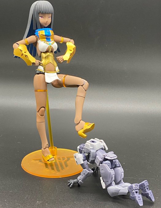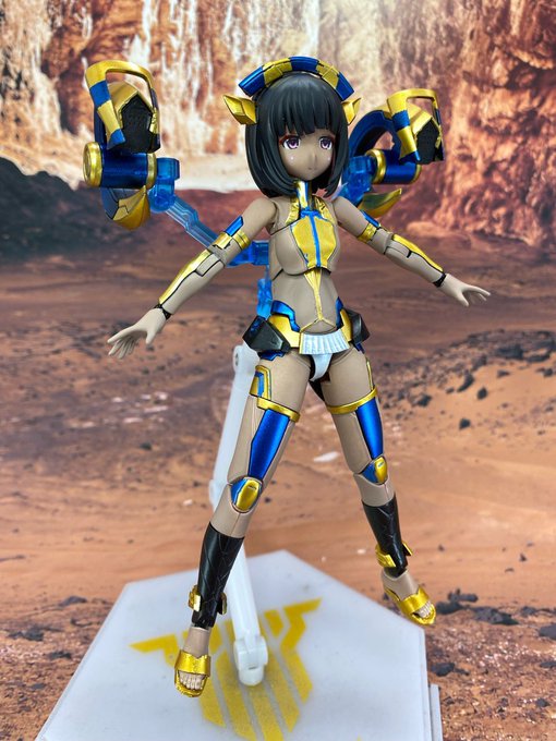 21 53 ホルス神金潟すぐみちゃんできました 肌色はラスキウス02+05に半光沢トップコート吹きました 色分けがすごいので塗装大変でしたが完成時満足度高いです #メガミデバイス #エジプト娘 21/09/08 11:11