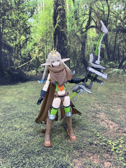 エーデルワイス:弓兵できました 某小鬼殺しに出てくるエルフを参考にしました アルカナディアと合うようにファンタジーな感じが出せて良かった 弓(U.C.ARMS)とポーチ(サークル名忘れましたすみません)はガレージキットです #メガミデバイス