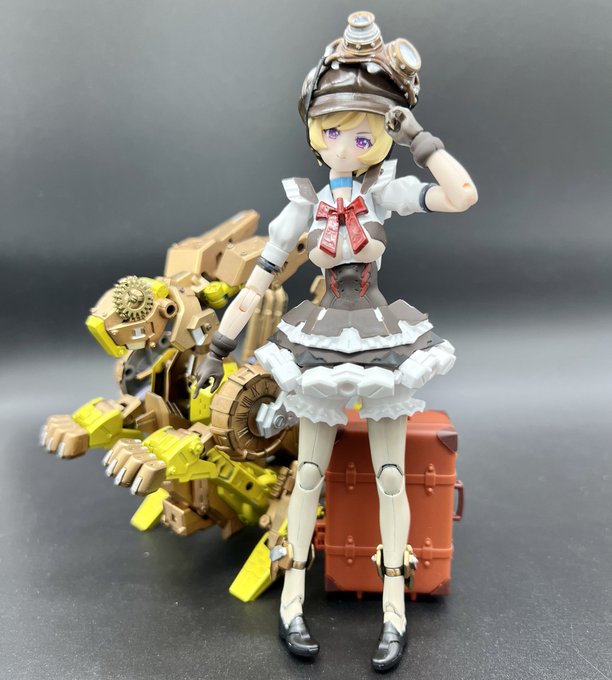 スチームパンク風アリスできました キャスケットとゴーグルとドロワ風アーマーのお陰でスチームパンクの雰囲気が再現できたと思っています #メガミデバイス #スチームパンク