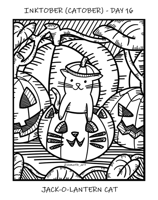 Inktober Day 16: Jack-o-Lantern Cat #inktober #inktober2021 #catober #catober2021 #cat #digitalart #pumpkin #jackolantern