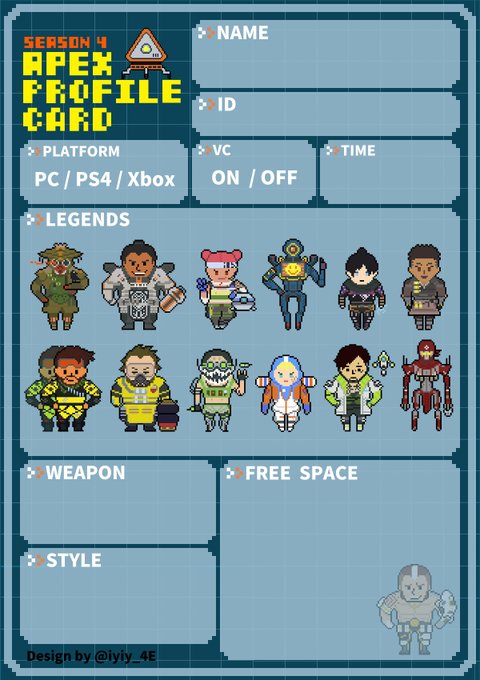 レヴさん来た記念に作ってみました。 色々使いづらいところが多々ありますが、使用報告等不要ですのでよければ...! #Apex自己紹介カード #Apex自己紹介カードテンプレ