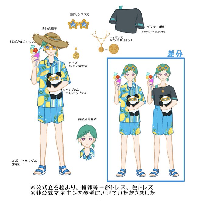 11 72 #緑仙の新衣装コンテスト これは自分で描きました。爽やかなアロハシャツが見たくて 22/07/12 00:49