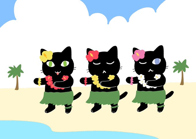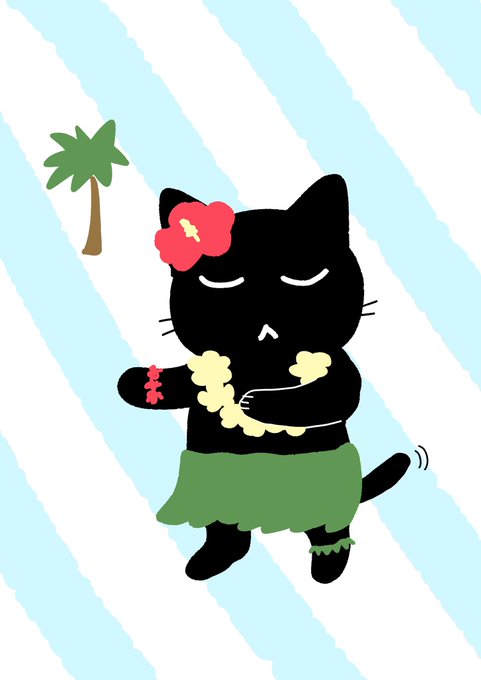 フラダンスねこちゃん増やしました🌴🌺 #イラスト