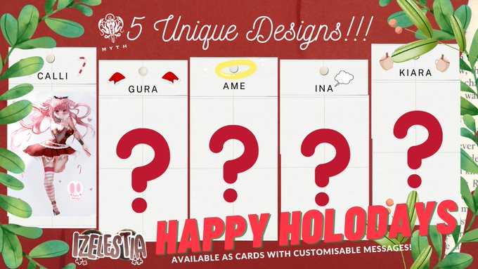 this holoday season, I am making a series of #HololiveEN christmas cards featuring the Hololive Myth girls in Christmassy outfits available on thortful! The first one is up already - Calli seems a little embarassed by her candycane outfit!!! thortful.com/card/636ebf197… #callillust