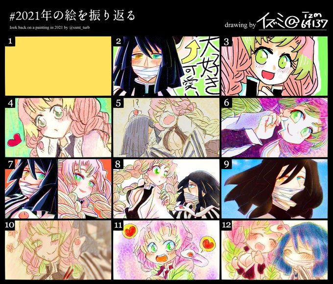 3 10 #2021年の絵を振り返る 1年間色々あってあっという間すぎた…!!落書き多めだが色の塗り方が変わった気がする〜 twitter.com/izm64137/statu… 21/12/29 19:52