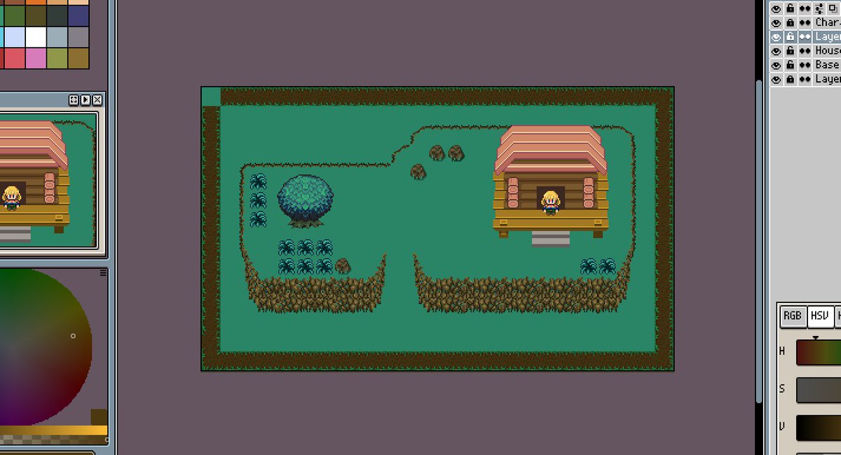 0 6 質感アップテカリダウン 家外観のセンスもうちょっと増やさないとだめだなぁと実感。 とりあえずこれでいこう 後は扉作ってGodotに実装 #ドット絵 #ゲーム制作 #ゲーム開発 20/10/17 11:05