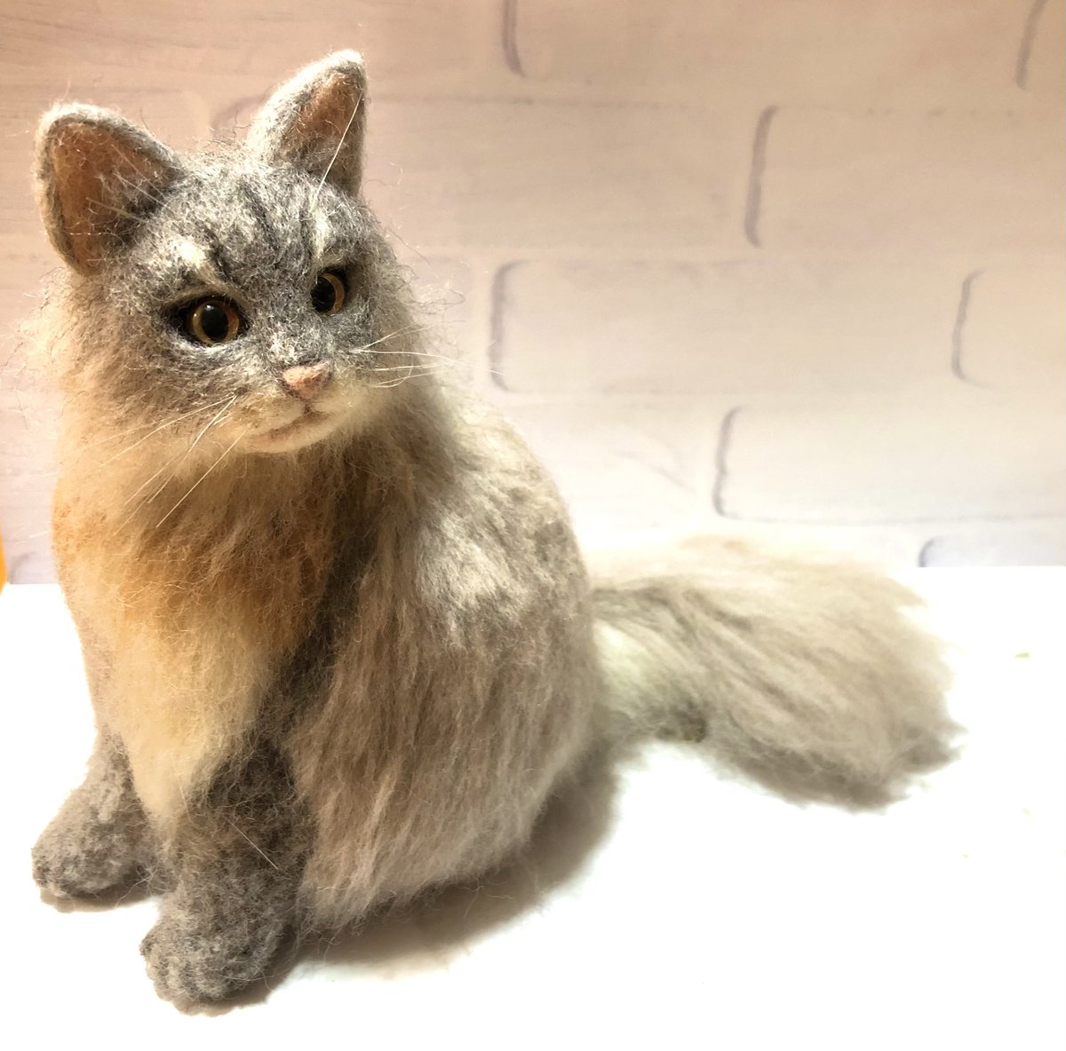 羊毛フェルト製、灰色の猫さん完成しました。 体高約28cm、本物の子猫位の大き さです。 猫種はロシアンブルーかな。ブリティッシュショートヘアっぽくもある。 私好みに楽しく作りました。 #羊毛フェルト #ロシアンブルー #ブリティッシュショートヘア #猫