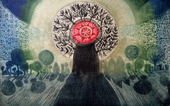 #絵描きさんと繫がりたい #秋の創作クラスタフォロー祭り トレンド入りしていたので 10月8日〜日本版画協会版画展に出品しています 11月13日から日本橋ギャラリーカノンさんで個展です。 よろしくお願いします #日本版画協会 #ギャラリーカノン #泉明美 #東京都美術館 #版画