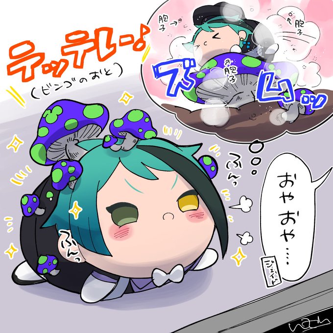 #今年も残りわずかなので今年一番伸びた絵を貼る見た絵描きさんも強制でやる #ツイステファンアート 今年はあんまり描けてないんですけど本年のトップもジェイドおもしろリーチでしたね…(🏕参加決定して喜びを抑えきれないジェの図)