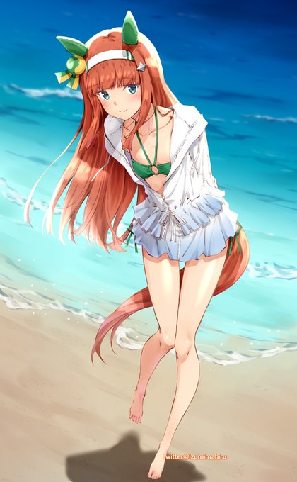 水着サイレンススズカ描いてみる。上着も着せてみる。膝上くらいでトリミングしようかと思ったけど、折角全身描いたので、足先まで入れてみた。ちなみに、スズカの別Verの為に単発チケットを貯めていて、現在137枚。もしスズカの別衣装来たら全部回す予定です。#ウマ娘 #ウマ娘プリティーダービー