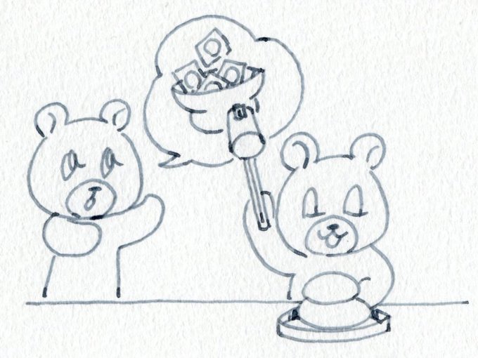 本日10月10日は #缶詰の日 と #肉だんごの日 と #ワンカップの日 だそうです(おい体育はどうした!?) #イラスト #ペン画 #inkdrawing #くま #illustration