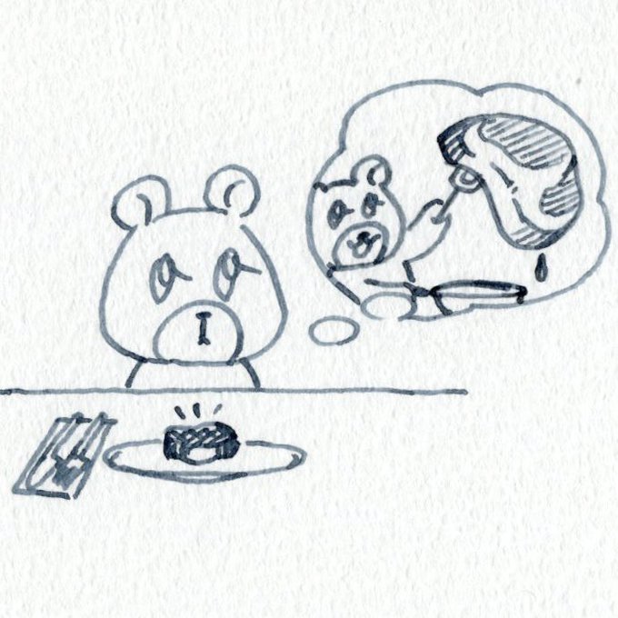 今日は #たまご料理の日 です。そういえば最近双子の卵を見ないなあ(1枚目は黄身が盛り上がりすぎた)。 #イラスト #ペン画 #inkdrawing #くま #illustration #万年筆