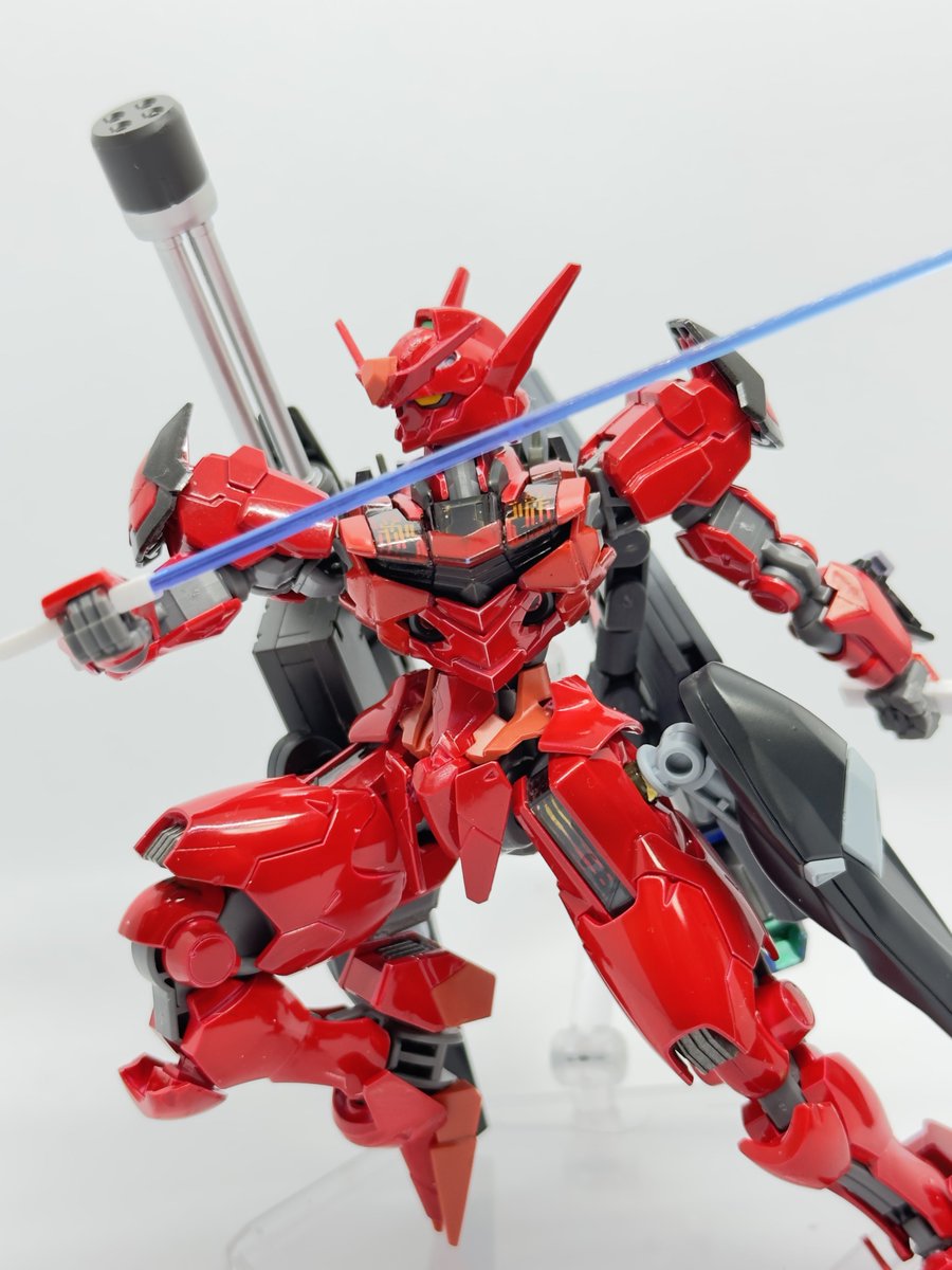 #ガンプラはどんな自由な発想で作ってもいいんだ #ガンプラの画像を貼るとRTされると聞いて #ガンプラ 水星版レッドウォーリアー パーメットガンダム3完成しました。 ビットやフェーズドアレイキャノンなどGUNDフォーマット中心の装備を施しました。 続く