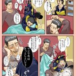 9 101 ページの関係で抜いた百夜一夜の弓を教えるお頭と尾形さんのボツ4コマの一部。後ろで仲間も見守る、アットホームな職場です。😂 たまに落書きや別の話を描いたりするから、そのまま前保存したフォルダに紛れていることがあります。巡回した方がいいですね。(自分へ) 22/03/27 11:05