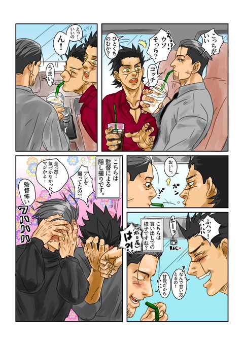 27 226 4 監督が二人でカフェに行かせた話は有名ですね。 杉:はい。尾形が好きそうな物を買ってやれって言われて。 尾:彼の運転でカフェに買いに行きました。杉元はブラックを渡してきましたけど …俺、飲めないのw(キャー❣️) 杉:クールなのに甘党なんだよね! 一では、その時の映像がこちら 二人:え? 23/01/11 23:28