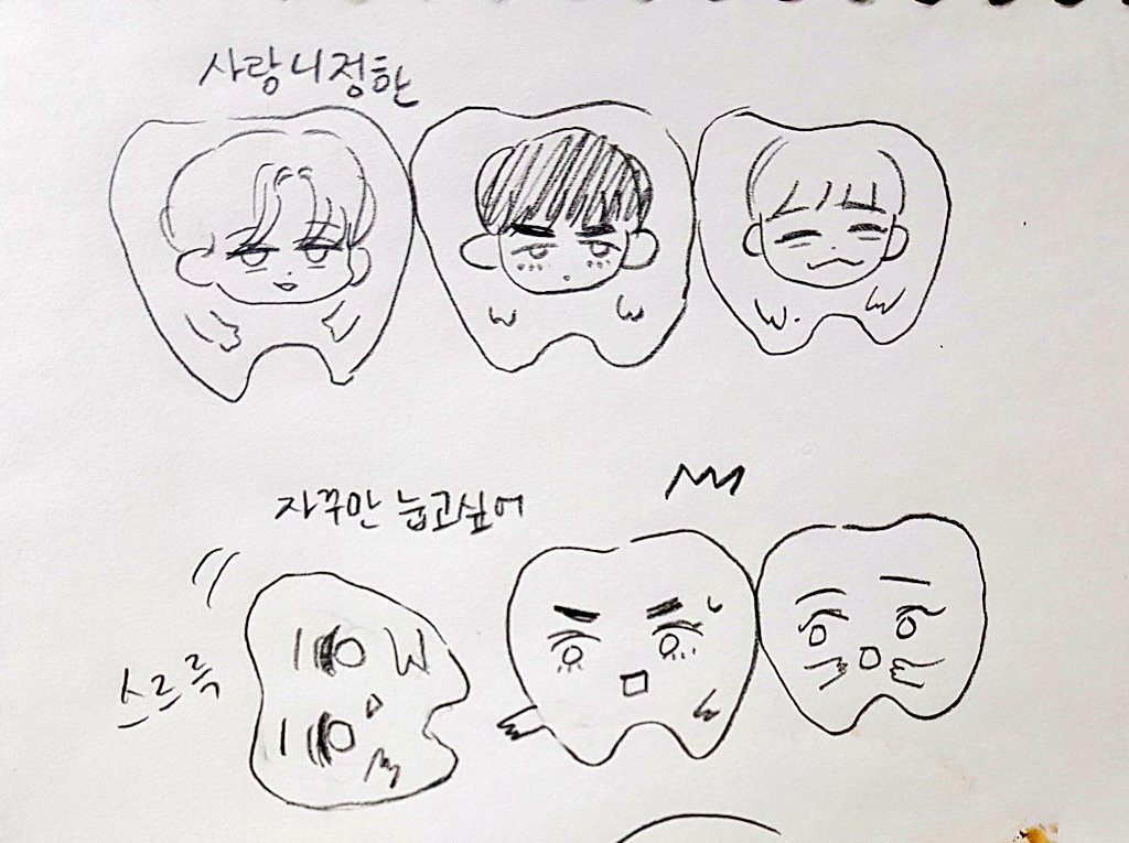 95즈 사랑니 낙서 재업 윤씨가 사랑니얘기하길래 ㅋㅋㅋㅋㅜ #정한