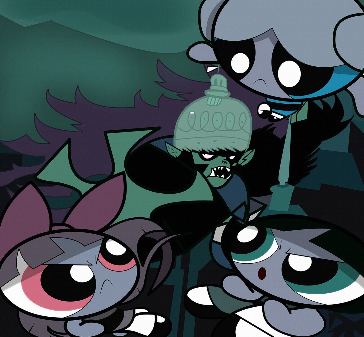パワーパフガールズムービーよりモジョとの関連シーンを4枚+αで描いてみた。こうしてみるとモジョも結構表情豊か波乱万丈な人生をムービー内で送ってるように見える。 #パワーパフガールズ #PPG