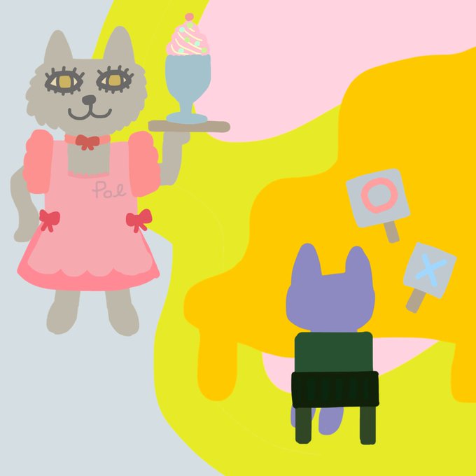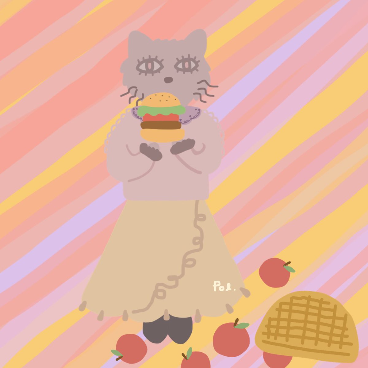 ジャンクフードに目覚める丁寧な生活を送る系の猫 #イラスト #イラスト好きな人と繋がりたい #絵描き #絵描きさんとつながりたい #猫 #illustration #ハンバーガー #りんご #フォロバ
