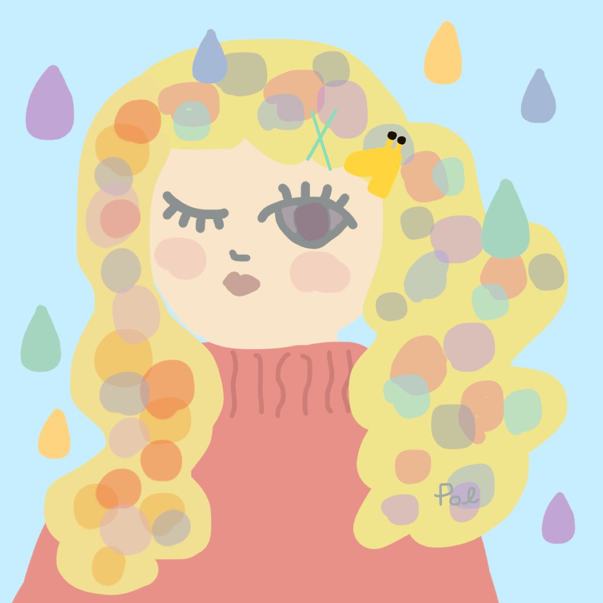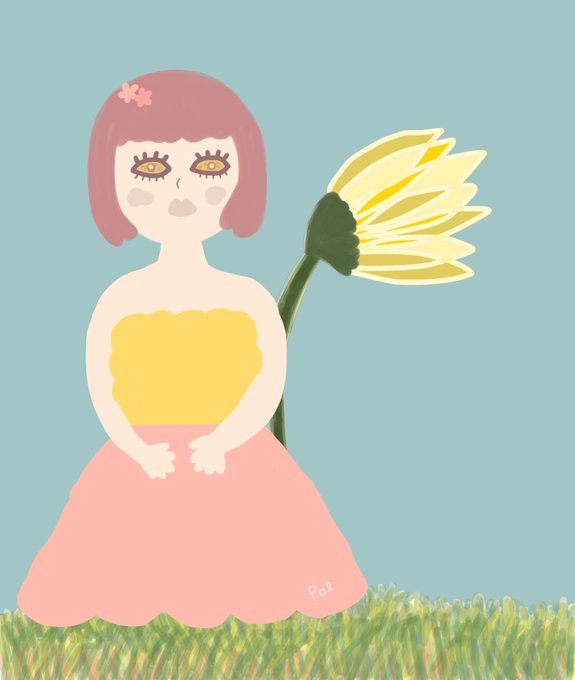 深夜の落書き。 デコデコのゆるふわおだんご髪にしてみたら おだんごがまりもみたいになっちゃった人間の女の子。 #イラスト好きさんと繋がりたい #絵描きさんと繋がりたい #女の子 #イラスト #まりも