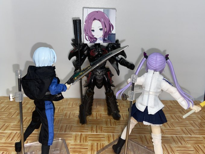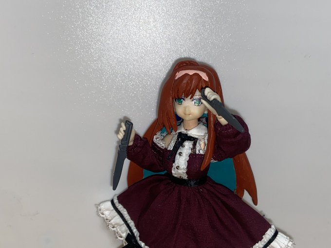 Q リボンはどうしましたか? A 付けようとしたら指の中で砕けてその挙げ句に破片が行方不明になりました まる しょうがないから1ミリの真鍮線引っ張り出してきてビニールテープ切ったので挟んで接着して塗装 #アサルトリリィドール部