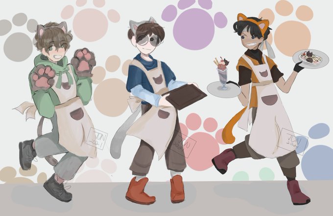 c-cat cafe au? (rts are cool 😳) #dreamfanart #georgenotfoundfanart #sapnapfanart #dreamteamfanart