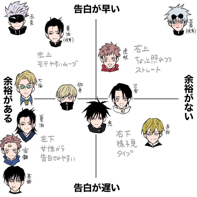 じゅじゅ男子の「本命に告白するタイミングについて」友達と盛り上がったので図にした(※個人的な意見)