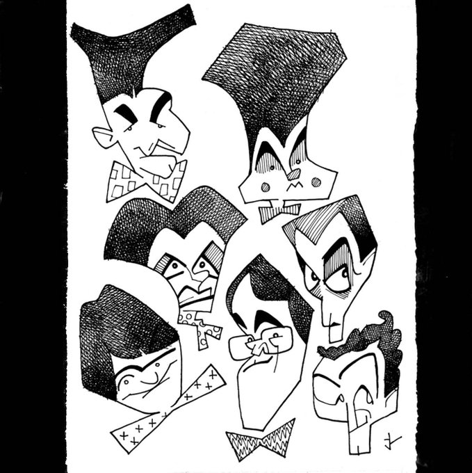 #musictober 18/31: Split Enz. Available for purchase (40€ + shipping), ink on A5 size paper. #inktober #ink #caricature #music #rock #splitenz #caricatura #newzealand #kiwi #kiwirock #timfinn #philjudd #eddierayner #wallywilkinson #emlyncrowther #noelcrombie #mikechunn