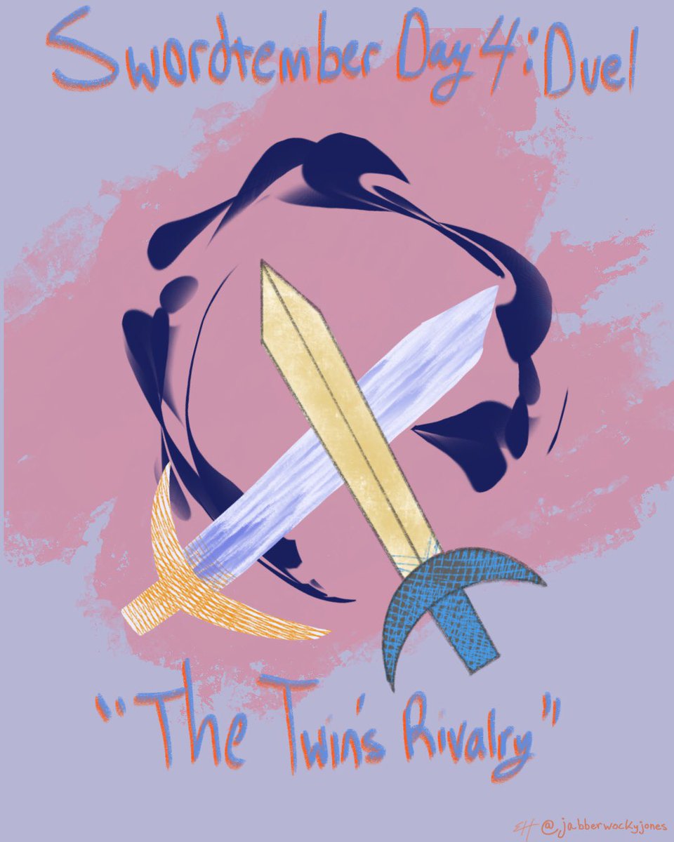 #Swordtember day 4: Duel My friend @Lucky_I_Think drew the sword with the blue blade and I drew the other, we thought it’d be cool to draw the swords together for this prompt 😊 I named them the Twin’s Rivalry