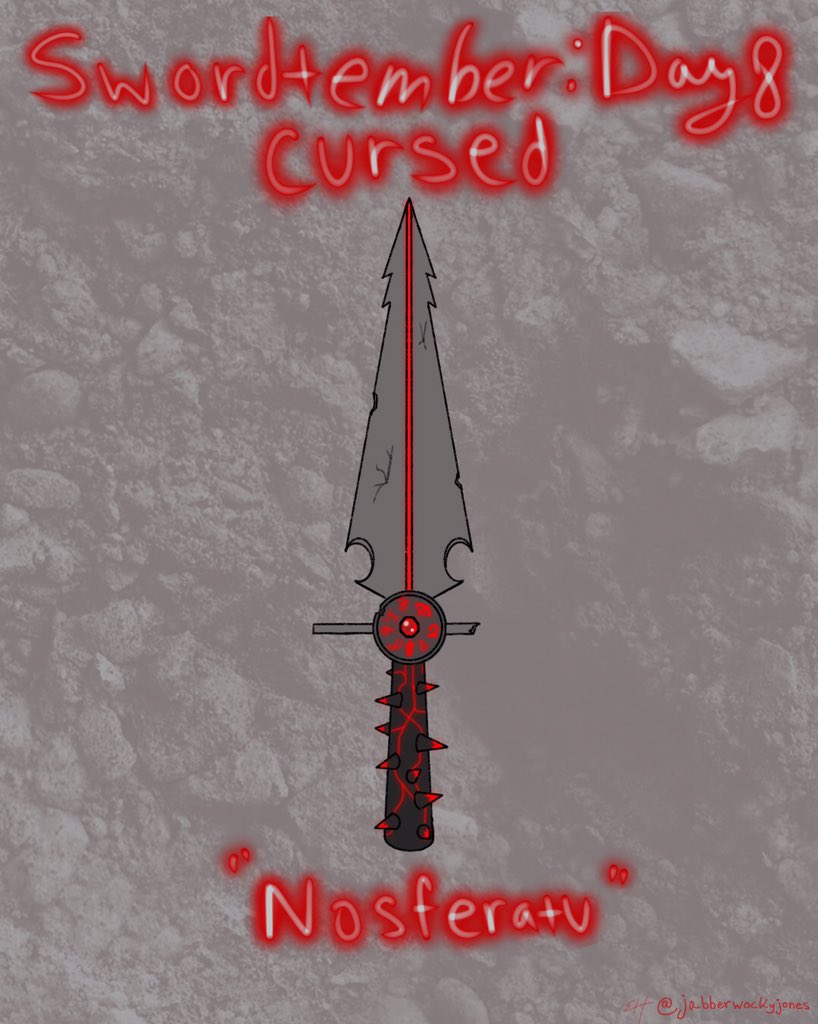 #swordtember day 8 Cursed Decided to go with a double edged sword type of thing, where the handle and the blade absorb blood to fuel the sword’s cursed power. Named him Nosferatu 🦇