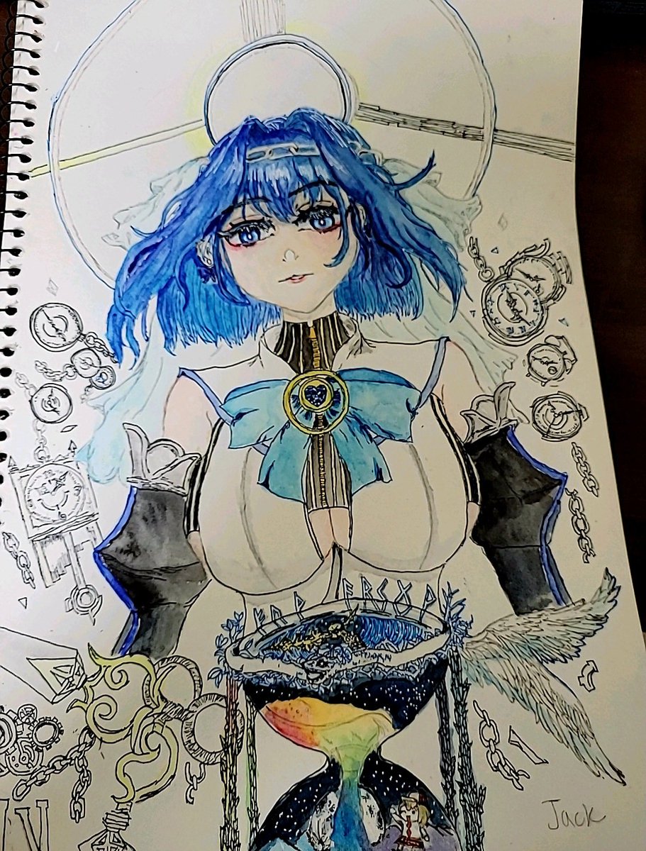 I draw incarnation of time. Yeah this is kronii! I was going to post it kronii's day but I'm uploading now because of Corona. Haha Its too late. But happy birth day kronii!! Oh and small ame draw too. #kronillust