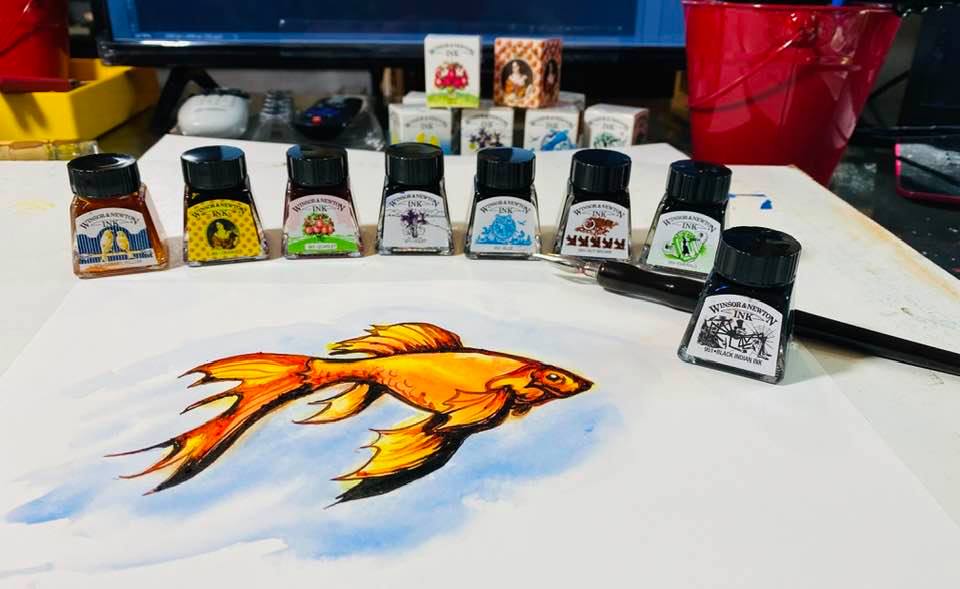 Fish - Jacki Kellum Drawing in Wash and Ink for #inktober2020 #inktober October 1, 2020 - Day 1 #watercolor #ink
