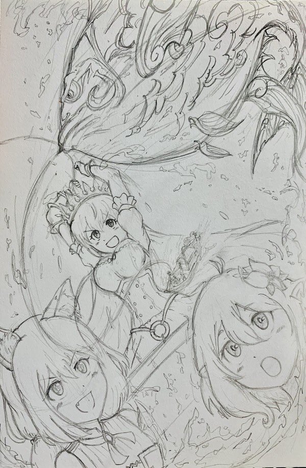 #プリコネファンアート ペンネーム:jack 3周年おめでとうございます! イラストはルカ姉と美食殿の3人です、 友達の勧めから始めたのですがハマってしまいました、 これからも応援してます! #プリコネR #プリコネ3周年
