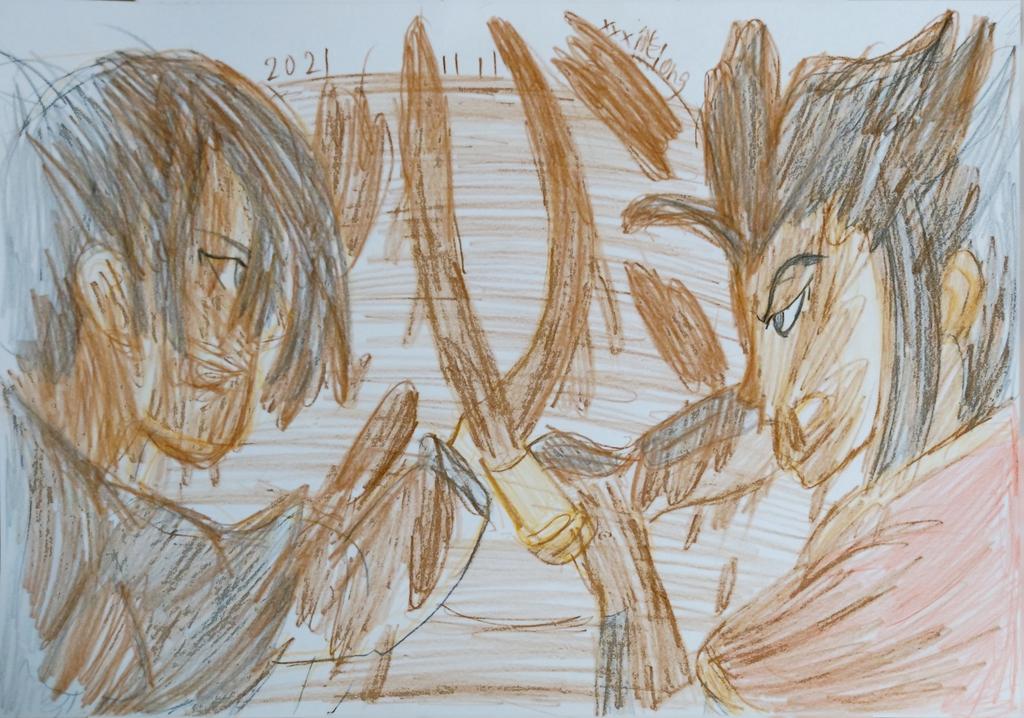 0 3 #今月描いた絵を晒そう 久しぶりのどろろです。 実は最近の絵は、コピー用紙の裏紙を二つ折りにして描いてます。 夫婦味が強い構図になったと思う。 そして火の鳥羽衣編の影響を受けてる… 23/05/30 20:52