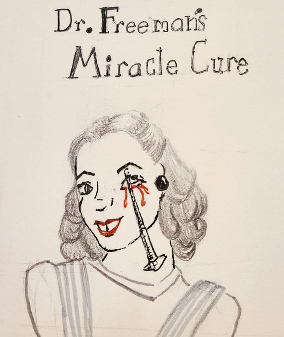 "Before dr. Freeman's treatment i used to feel dreadful things like sadness, anger, and sometimes even critical thought! Now everything's right as rain." #lobotomy #drawtober2020 #inkdrawing #inktober