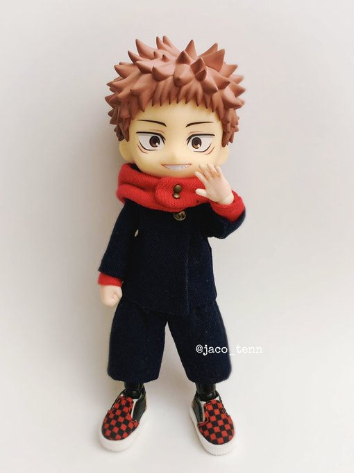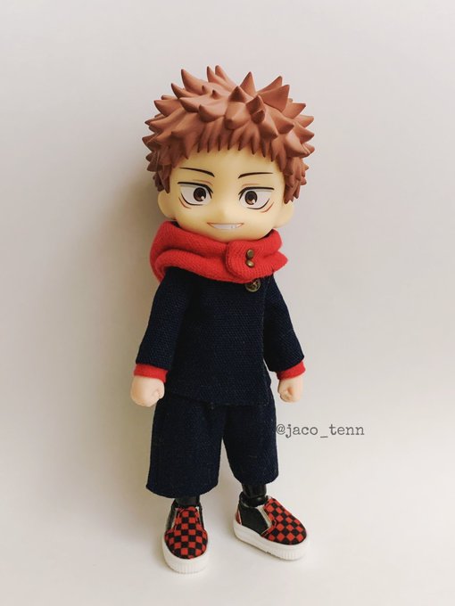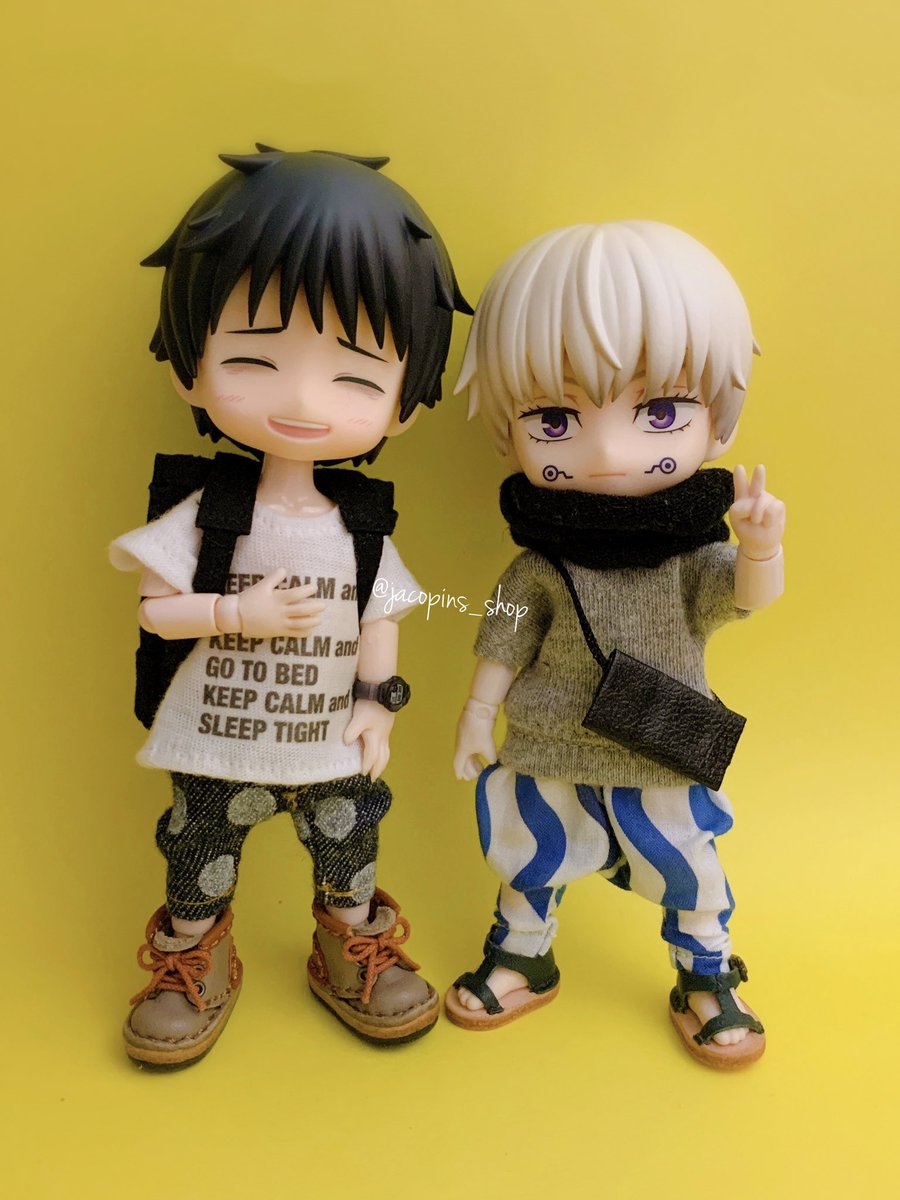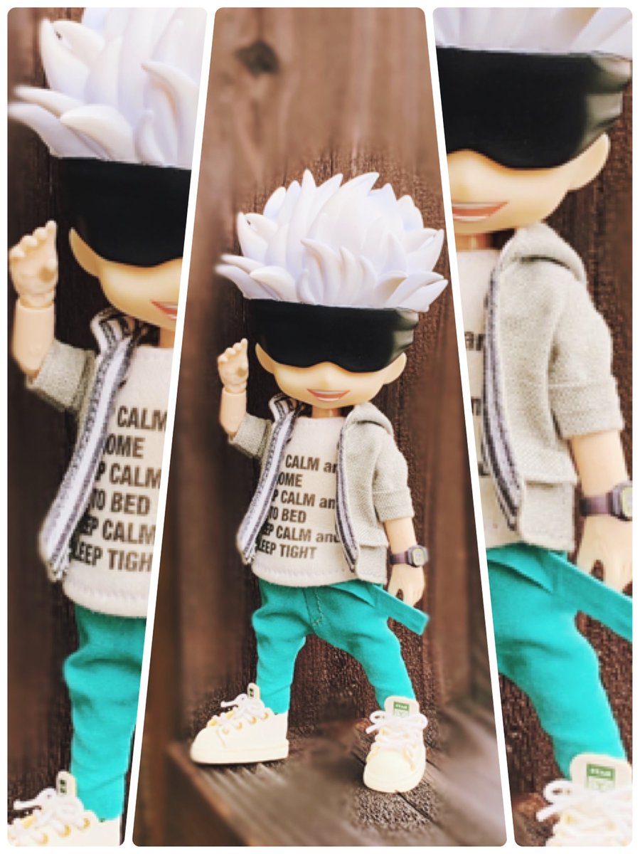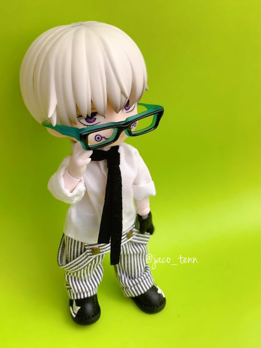 開封後即オビツろいど化失礼します。取り急ぎ手近にある自作服で失礼します。服はこれから作っていきます失礼します。 (拡張ボディパーツ使用) #じゅじゅドール部 #ねんどろいど五条悟 #ちっぷ靴