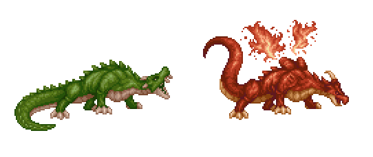 モンスター用ドット絵 デカイオオトカゲとダークっぽいドラゴン #ドット絵 #pixelart